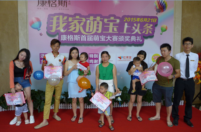6月21日萌寶大賽頒獎典禮在康格斯銷售中心隆重舉行。21日一大早,銷售中心就已經被萌寶寶們的親朋好友團占據,全家出動!萌寶寶們真是每個家庭的小天使啊!隨著激動人心的音樂的響起,萌寶大賽的頒獎典禮開始,萌寶寶們和親友團們依次上臺上臺領取了獎狀和由贊助單位提供的精美獎品,參賽的家長們都表示非常感謝康格斯舉辦這個活動,讓他們的寶寶得到更多人的認可,其中一位劉姓的家長說,他一早就考慮在康格斯買房,通過一系列活動更是讓他親身體驗到了康格斯項目的居住氛圍的溫馨和歡樂,使他的信心更加堅定。